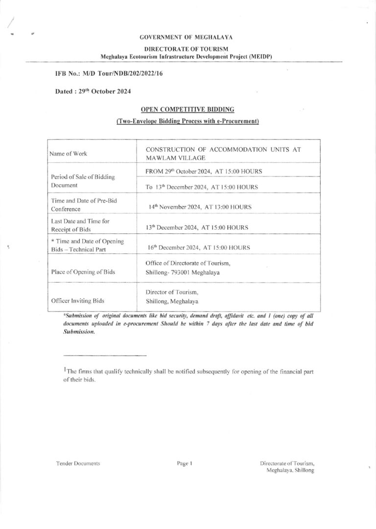 Opening Competitive Bidding – Construction Of Accommodation Units At Mawlam Village